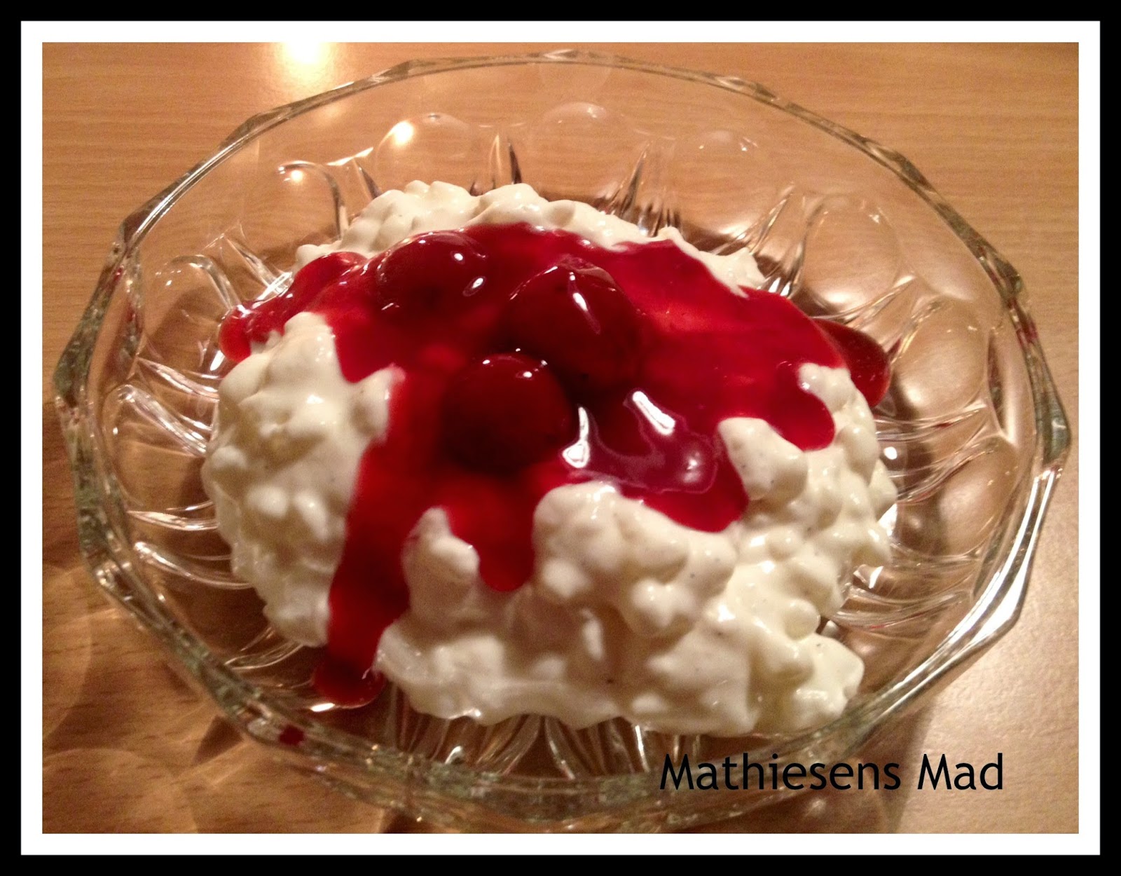 Pisk fløden og vend den i grøden. Smag til, måske der skal lidt vanillesukker i.