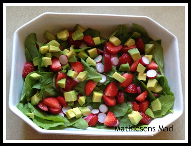 Rør en marinade af olie, eddike og honning og hæld den over salaten.