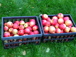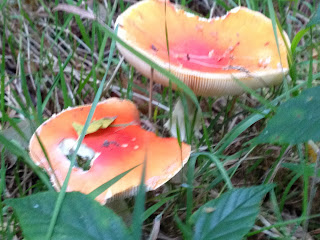 Svampene lod vi dog stå 😉 tænkte det nok var bedst for helbredet ;), men de er da smukke. Vi lod også de sidste hyldebær hænge til fuglene, og nøjedes med at plukke æbler og pærer ….